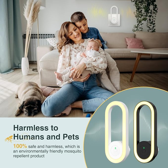 Repels mosquitoes and other flying insects using advanced ultrasonic waves – 100% safe for humans and pets.
